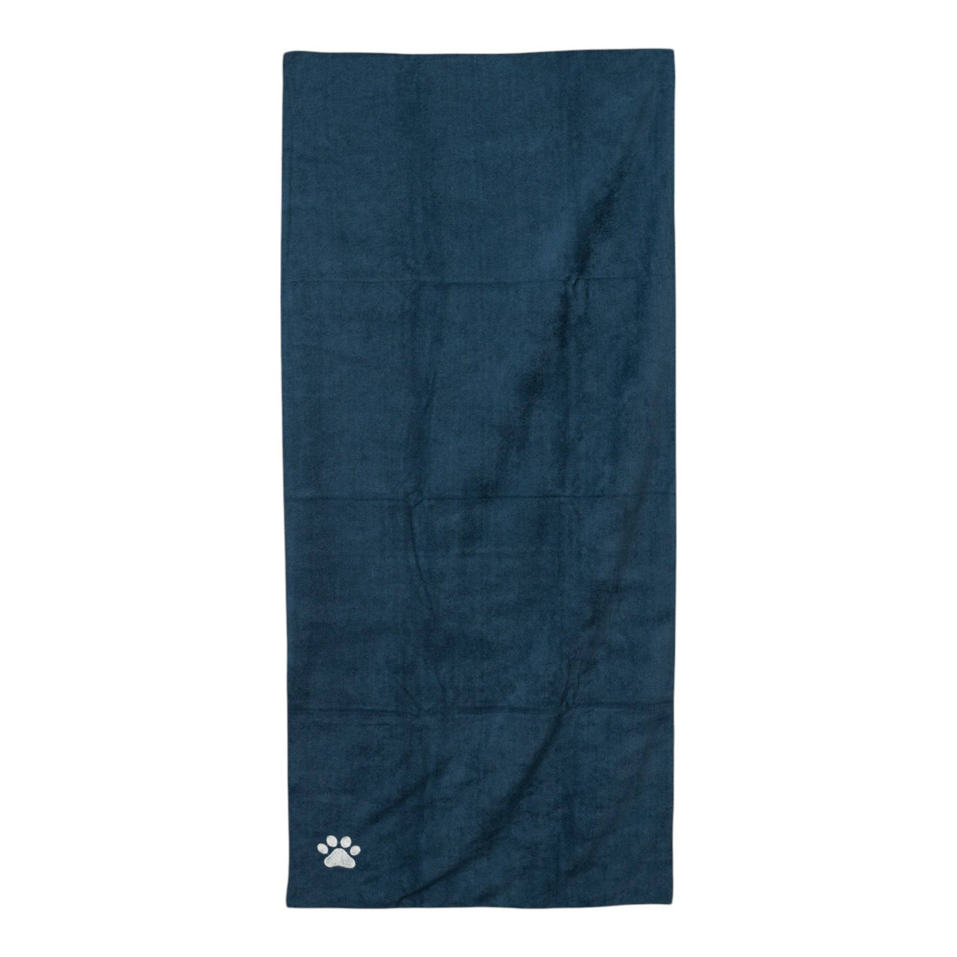 Introducing our Quick Drying Microfiber Pet Bath Towel in Marine Blue, the perfect addition to your pet care lineup. Crafted from premium high-quality microfiber, this towel is built to absorb moisture quickly and efficiently, making it ideal for drying dogs of all sizes after bath time or a rainy walk. With its stylish embroidered paw print, it combines function and fashion in one.